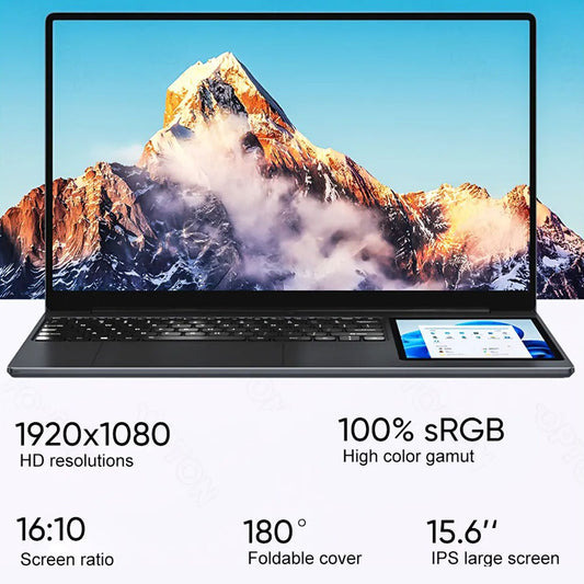 CRELANDER Dual Screen Laptop 15.6"+7" Touchscreen Laptops PC Notebook