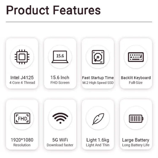 CRELANDER 15.6 inch 8GB RAM 128GB/256GB/512GB/1TB Intel Celeron J4125 Laptop